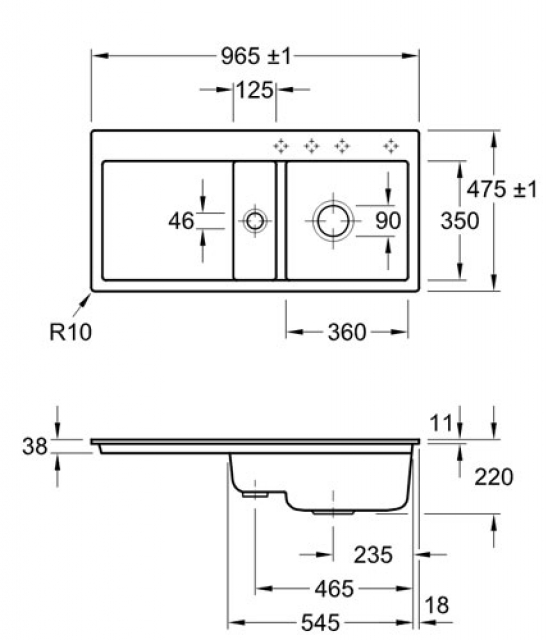 - Spülenmaße: L x B 965 x 475 mm