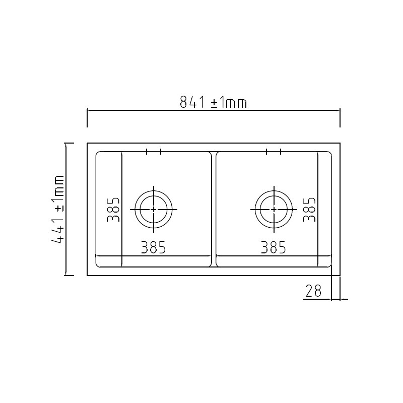 • Ausschnittmaß in der APL: Breite 845 x Tiefe 445 mm