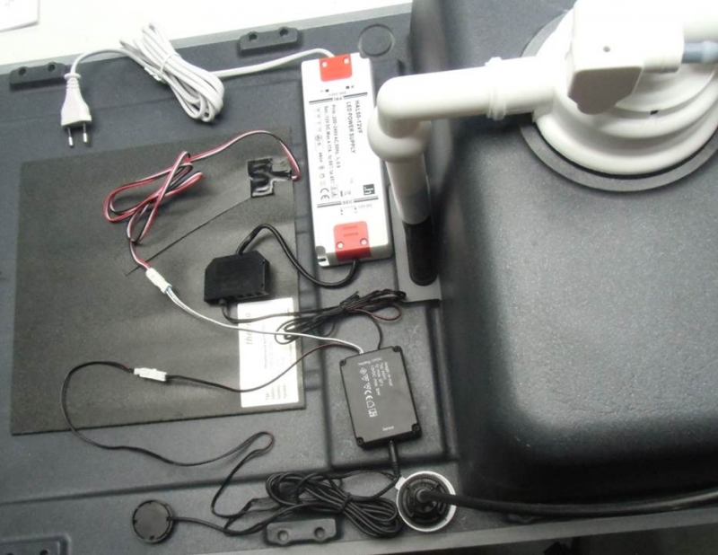 Die Heizmatte ist von oben nicht sichtbar und wird von unten mit der Spüle verklebt