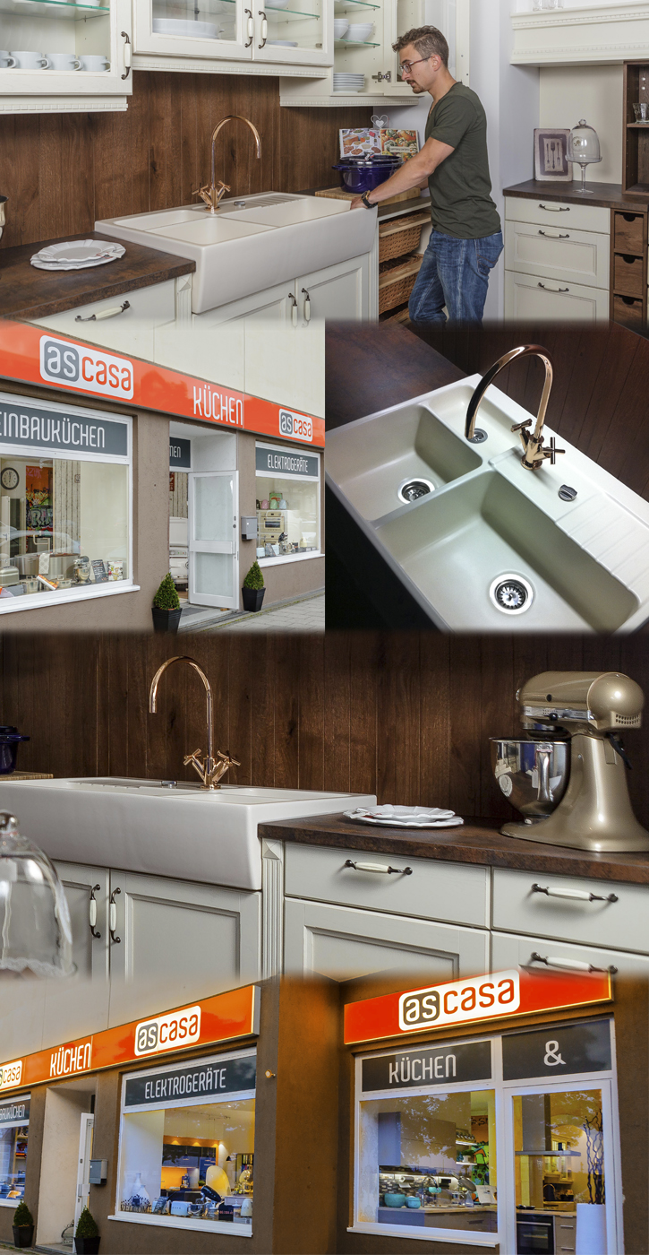 Das Füllen und Ablaufen der Spüle wird über einen runden Drehknebel auf der Oberseite der Spüle vorgenommen. Dieser Knebel, Excenterbetätigung genannt, verschließt oder öffnet den Ablauf der Spüle, je nachdem in welche Richtung er gedreht wird. Der Griff in das Spülwasser entfällt somit.