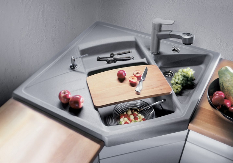 Spülutensilien-Mulde hinter dem Hauptbecken
