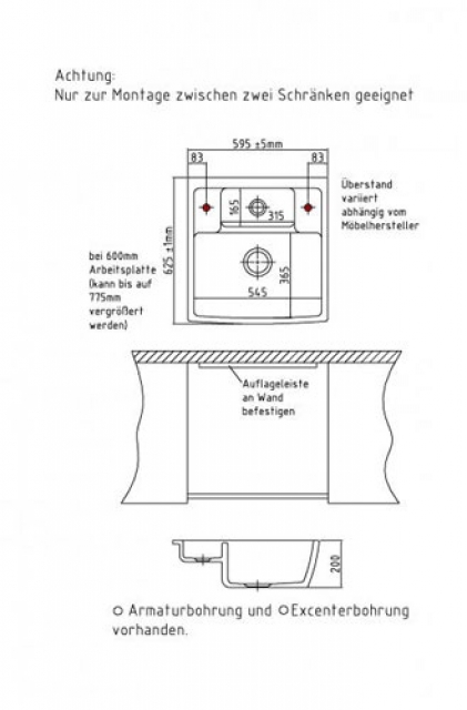 Das Füllen und Ablaufen der Spüle wird über einen runden Drehknebel auf der Oberseite der Spüle vorgenommen. Dieser Knebel, Excenterbetätigung genannt, verschließt oder öffnet den Ablauf der Spüle, je nachdem in welche Richtung er gedreht wird. Der Griff in das Spülwasser entfällt somit.
