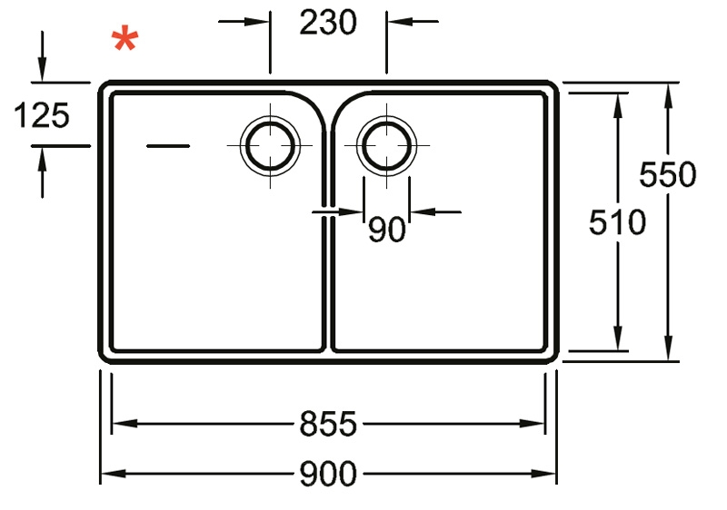 Hinweis: ist auf der oben stehenden Produktabbildung auf der Spüle ein runder Drehknebel zu sehen, handelt es sich um die Version mit Excenter-Betätigung. Eine eventuell abgebildete Armatur gehört nicht zum Lieferumfang.
