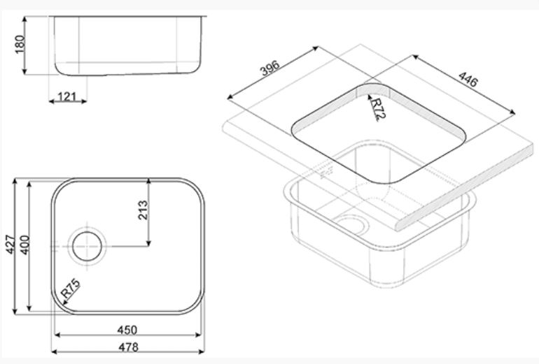 Die SMEG UM45RA2 ist eine Unterbau-Einbau Spüle mit einer Breite von 40cm und einem Nischenmass von 45 cm. Sie verfügt u.a. über eine Ab- und Überlaufgarnitur und Dichtungs- und Befestigungsmaterial.