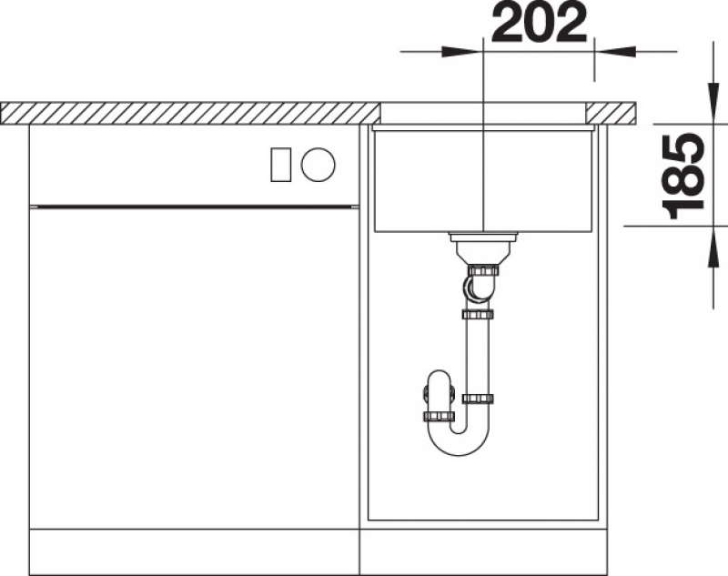 Ablaufgarnitur mit Raumsparrohr