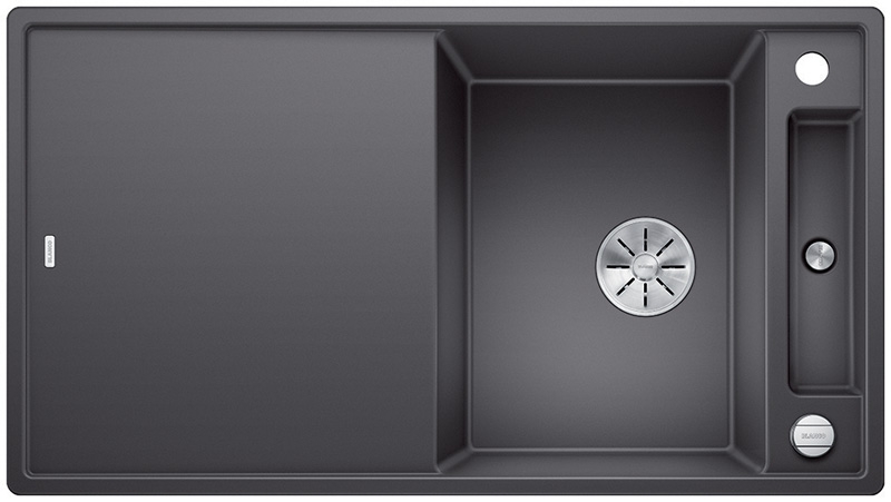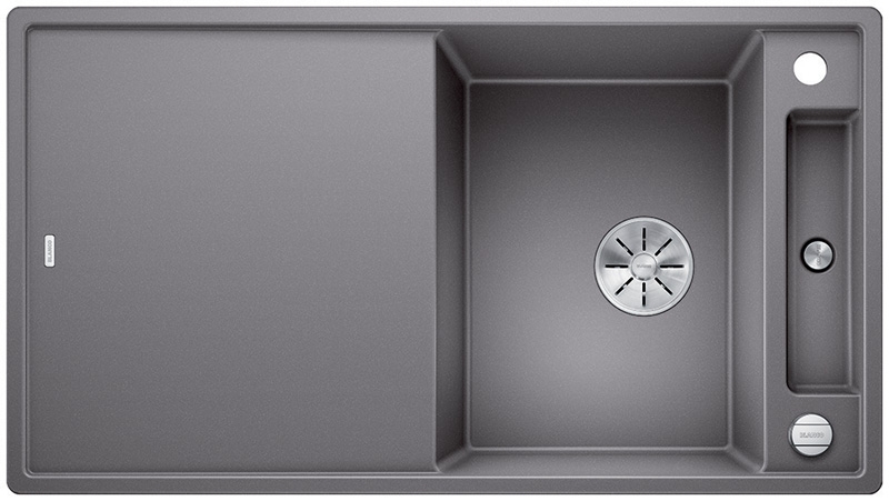 • Die Spüle Blancoaxia III 5 S  ist in den Farbvarianten "anthrazit", "felsgrau", "alumetallic", "perlgrau", "weiß", "jasmin", "champagner", "tartufo", "muskat" und "cafe" erhältlich.