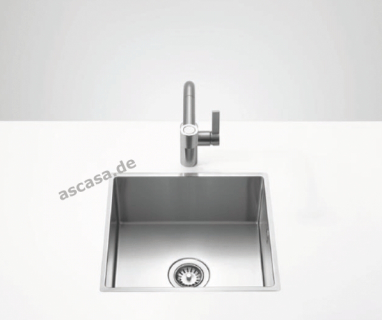 Dieses Edelstahl-Einzelbecken von Dornbracht ist eine Unterbauspüle. Bevorzugen Sie eine Auflegespüle oder Spüle für den flächenbündigen Einbau, wählen Sie bitte die Artikelnr. 38061000-86.