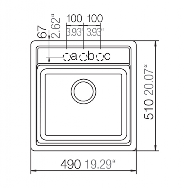 • Länge 490 mm, Breite 510 mm