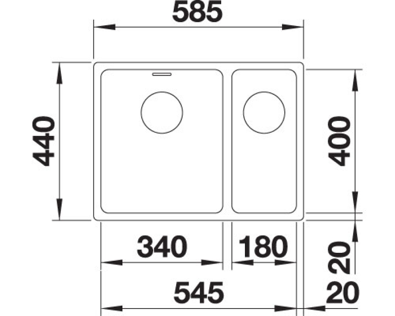 Blancoandano Einbauspüle 340/180-U Unterbau, Hauptbecken links, Edelstahl seidenglanz