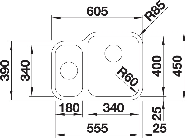 Blancosupra Unterbauspüle 340/180-U, Edelstahl bürstfinish, Becken links