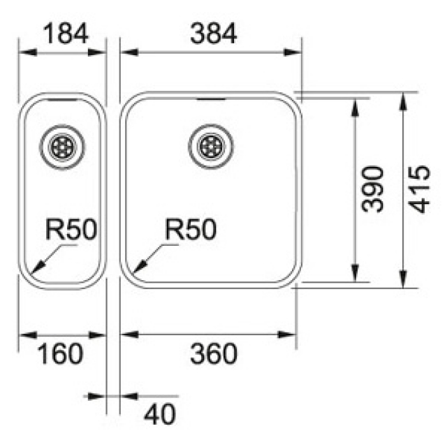 unterbaufähige Spülenkombination für Spülenunterschränke ab 60 cm