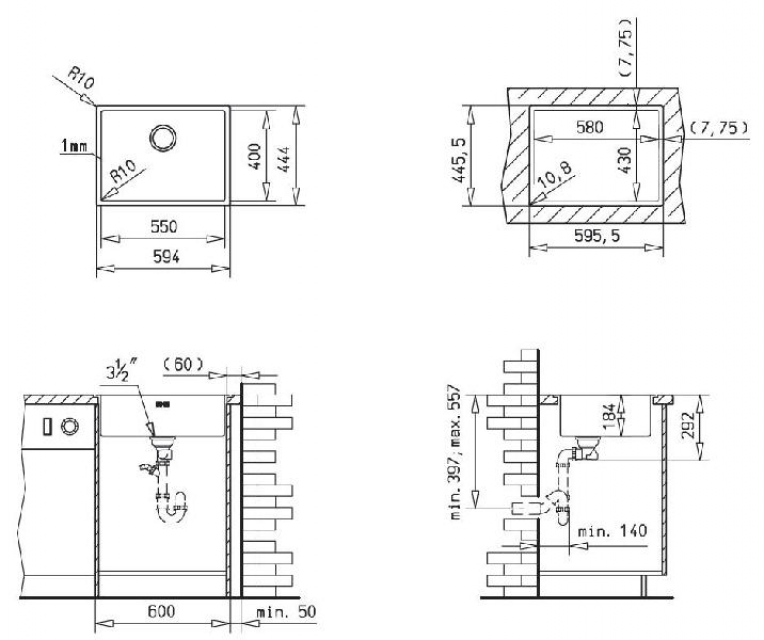 Mithilfe eines Befestigungssatzes ist bei ausgewählten Spülen auch der Unterbau möglich. Die Einbauzeichnung ist dabei zu beachten.