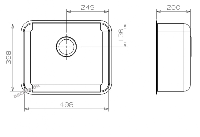 Reginox IB5040-CC (316) ohne Überlauf, als Auflagespüle, flächenbündige Spüle und Unterbauspüle einbaubar