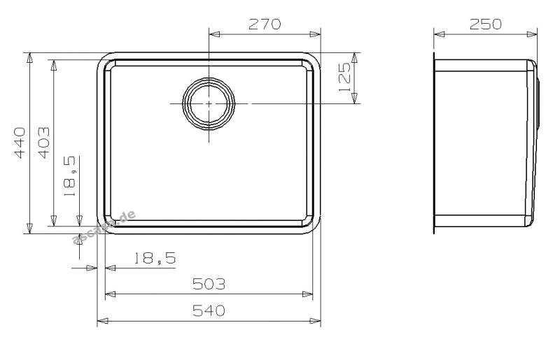 Die Reginox Kansas 50 x 40-CC (304) ohne Überlauf kann sowohl als Einbau-/Auflage-Spüle als auch als Unterbauspüle oder als flächenbündige Spüle eingebaut werden.