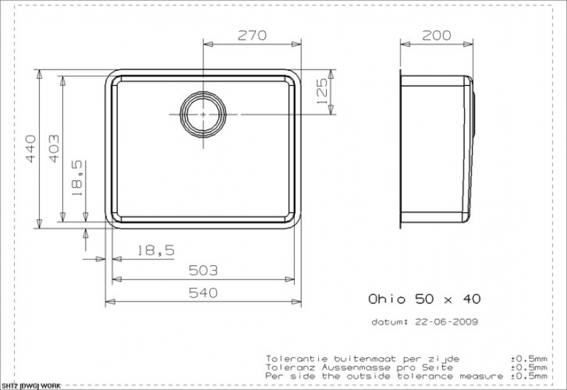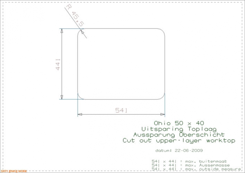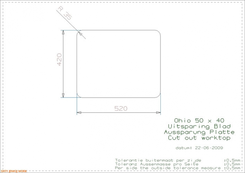 • Abmessung der Spüle: 503 x 403 mm