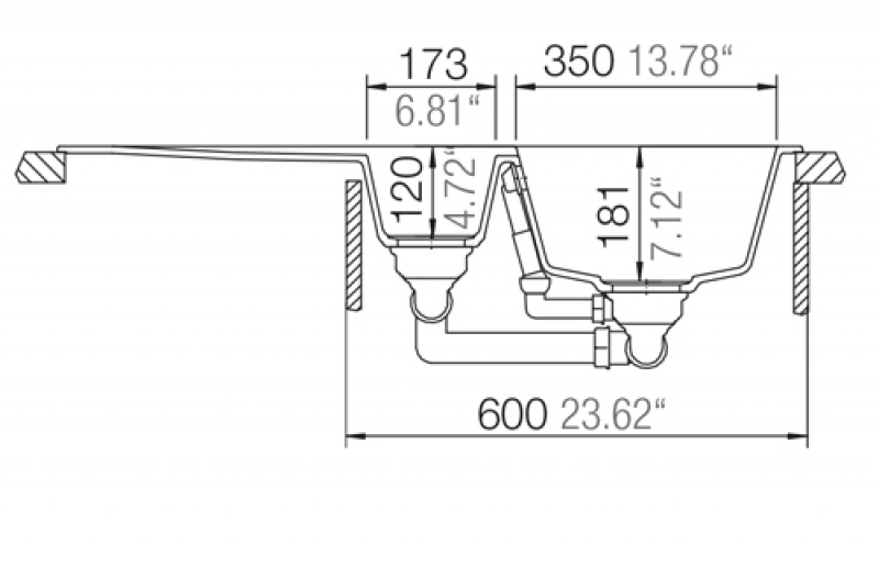 • Ablaufgarnitur 3 1/2" inklusive aller Ablaufverbindungen