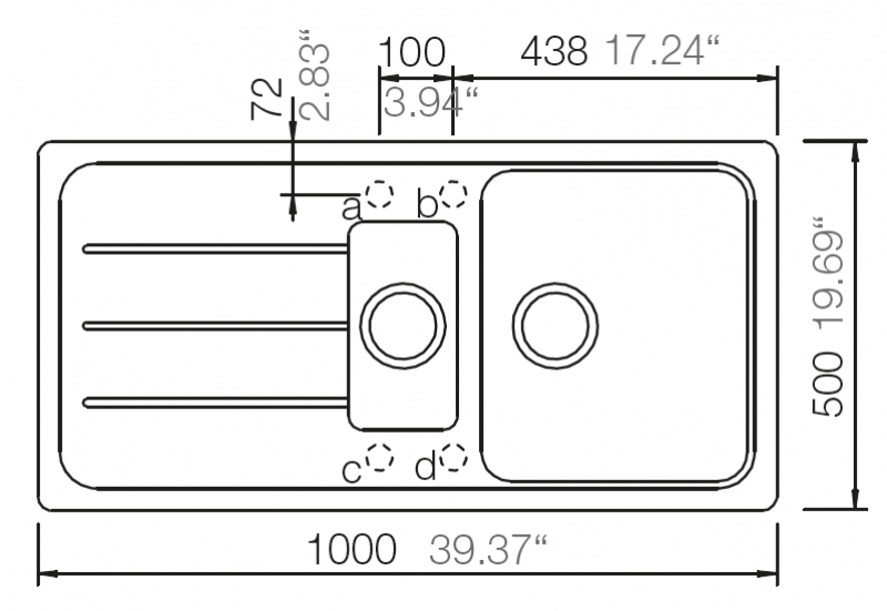 reversibel heißt: die Spüle läßt sich sowohl links als auch rechts herum einbauen; d. h. Sie können selbst entscheiden, ob Sie das Abtropfbecken auf der rechten oder auf der linken Seite haben möchten.