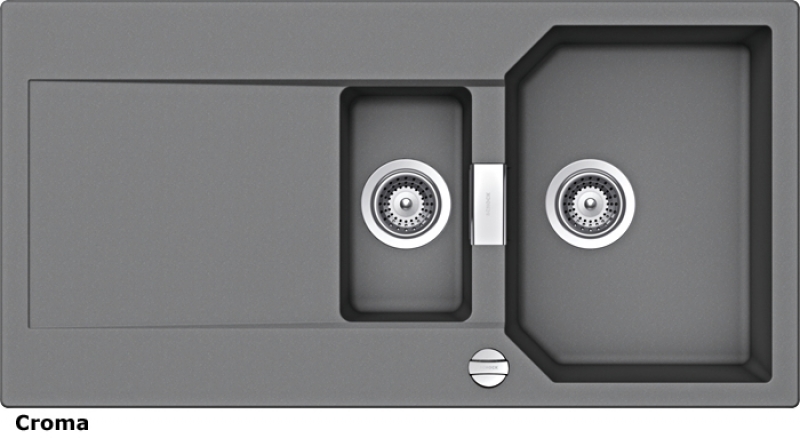 reversibel heißt: die Spüle läßt sich sowohl links als auch rechts herum einbauen; d. h. Sie können selbst entscheiden, ob Sie das Abtropfbecken auf der rechten oder auf der linken Seite haben möchten.