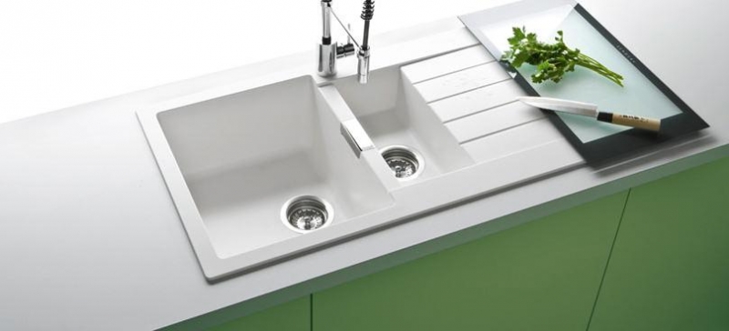 reversibel heißt: die Spüle läßt sich sowohl links als auch rechts herum einbauen; d. h. Sie können selbst entscheiden, ob Sie das Abtropfbecken auf der rechten oder auf der linken Seite haben möchten.