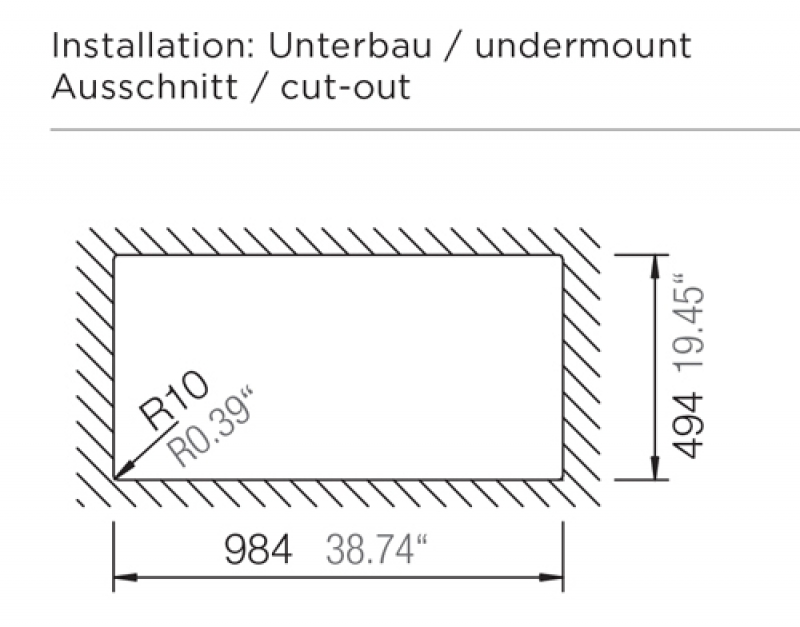 • diese Spüle ist nur als Unterbau-Spüle einbaubar, ein flächenbündiger Einbau oder der Einsatz als Einbau- bzw. Auflage-Spüle ist nicht möglich! Es gibt von diesem Modell jedoch Schwester-Varianten, die dafür vorgesehen sind (anstelle "U" am Ende "FB" für die flächenbündig einzubauende Variante und "A" für das Einbau- bzw. Auflage-Modell)