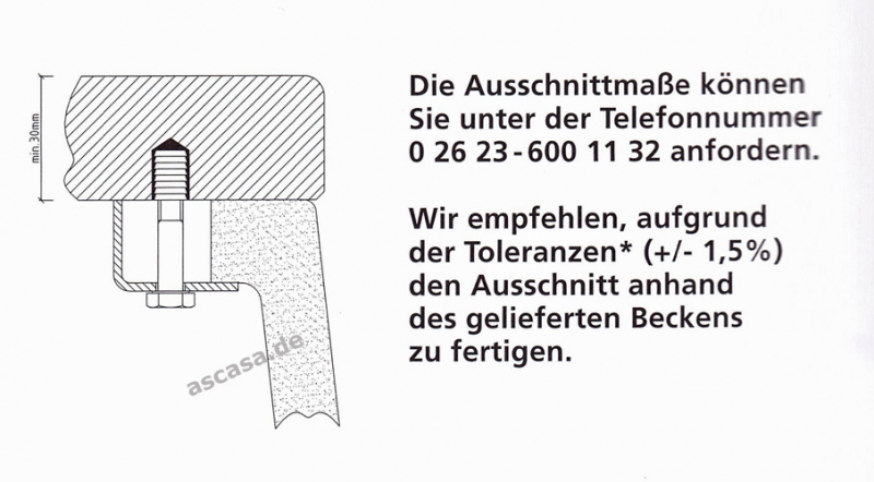 - diese Spüle ist nur als Unterbau-Spüle einbaubar; ein Einbau als Auflagespüle oder der Einsatz als flächenbündige Spüle ist nicht möglich! Es gibt von diesem Modell jedoch zwei Schwester-Varianten, die für den Einbau als Auflagespüle bzw. als flächenbündige Spüle vorgesehen sind.