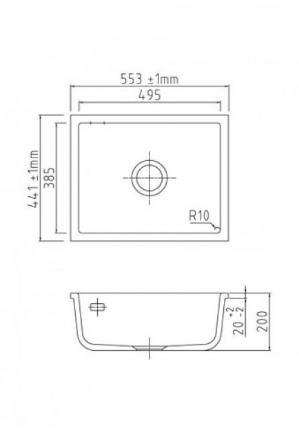 • Ausschnittsmaß in der Arbeitsplatte: 483 x 375 mm / R 6 mm