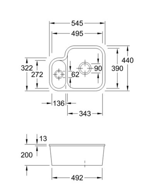 - Spülenmaße: L x B 545 x 440 mm