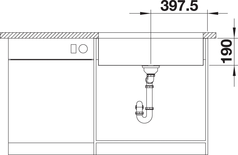 • Integriertes, großes BLANCO CLARON XL Einzelbecken