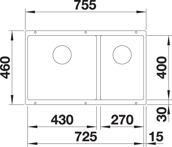 Abmessungen 755 x 400 mm