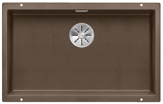 Die Spüle Blancosubline 700-U ist in den Farbvarianten "anthrazit", "felsgrau", "alumetallic", "perlgrau", "weiß", "jasmin", "champagner", "tartufo", "muskat" und "cafe" erhältlich.