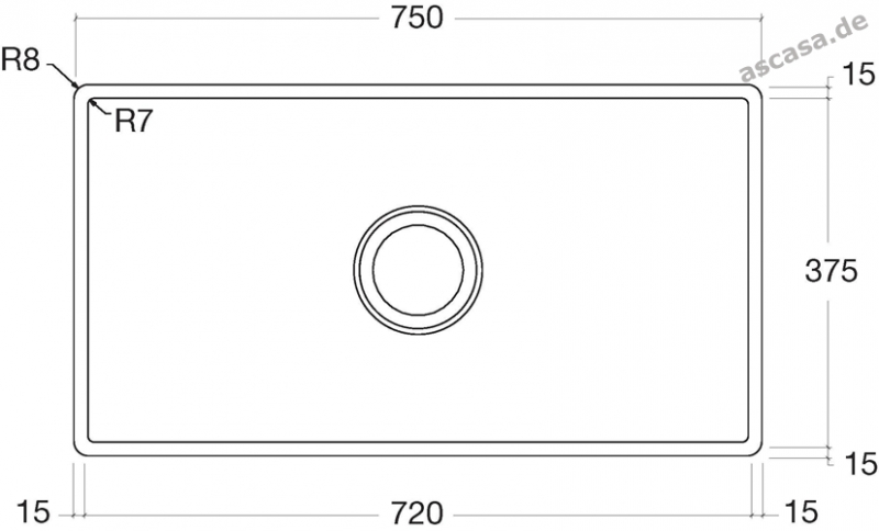 Dornbracht Water Units, Unterbau-Einzelbecken, 750 x 405 mm, aus gebürstetem Edelstahl