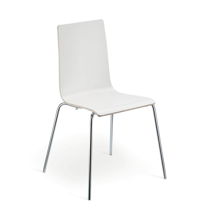 Naber Tablon Lilly 1, Gestell verchromt, Stuhl in Lamininat weiss