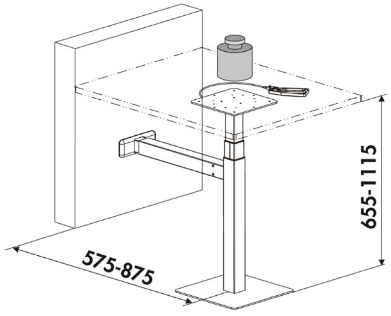 stufenlos höhenverstellbar von 655 bis 1115 mm (zzgl. Tischplatte)
