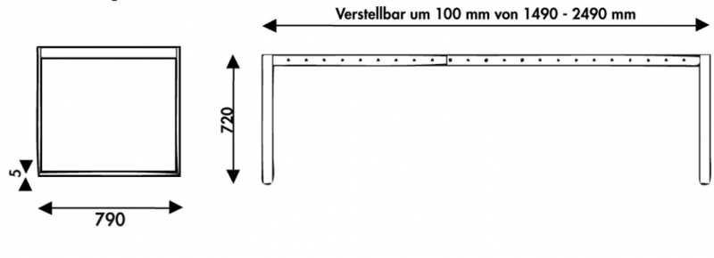 durch die Längenflexibilität zwischen 1490 bis 2490 mm nutzen Sie Ihre Räumlichkeiten optimal aus, mit der Auswahl einer individuellen Tischplatte schaffen Sie ein homogenes Raumbild.