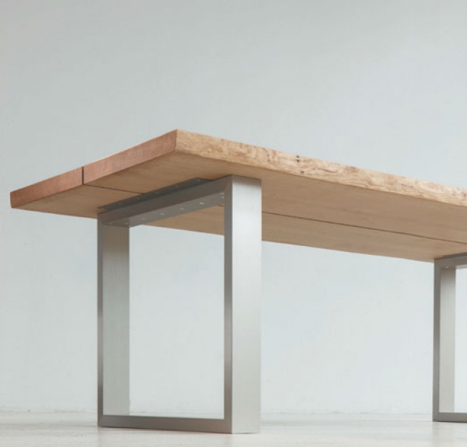 Gestell aus Aluminium, wahlweise mit separat zu bestellender Tischplatte aus Echtholz.