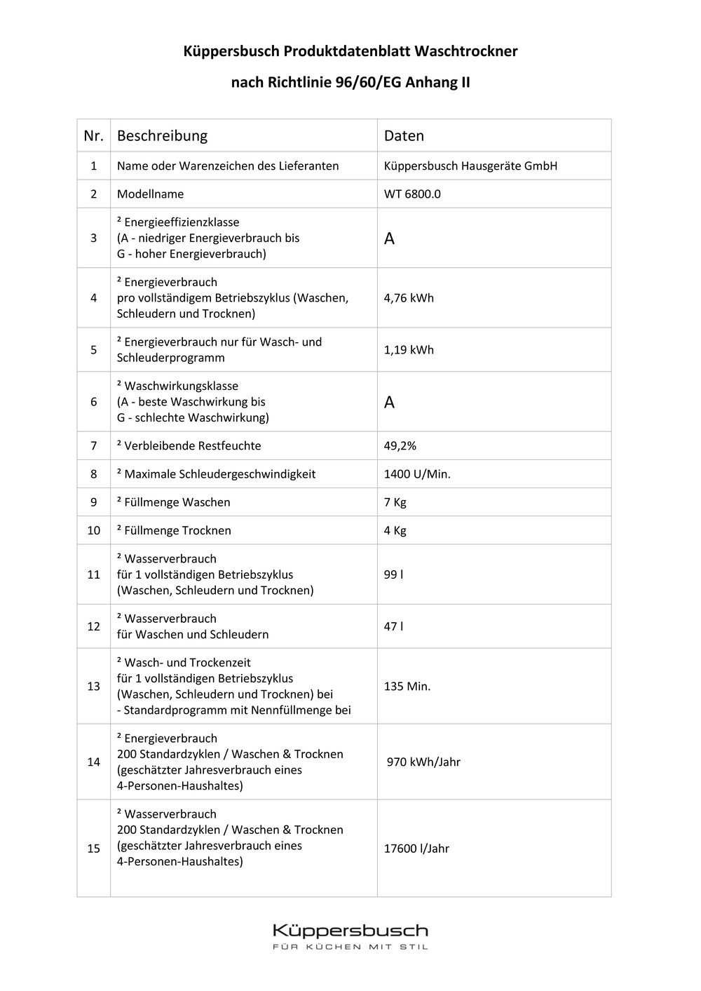 •    Austausch gegen einen gleichwertigen oder neuen Artikel Küppersbusch WT 6800.0 i (ggf. auch ein Nachfolgemodell).